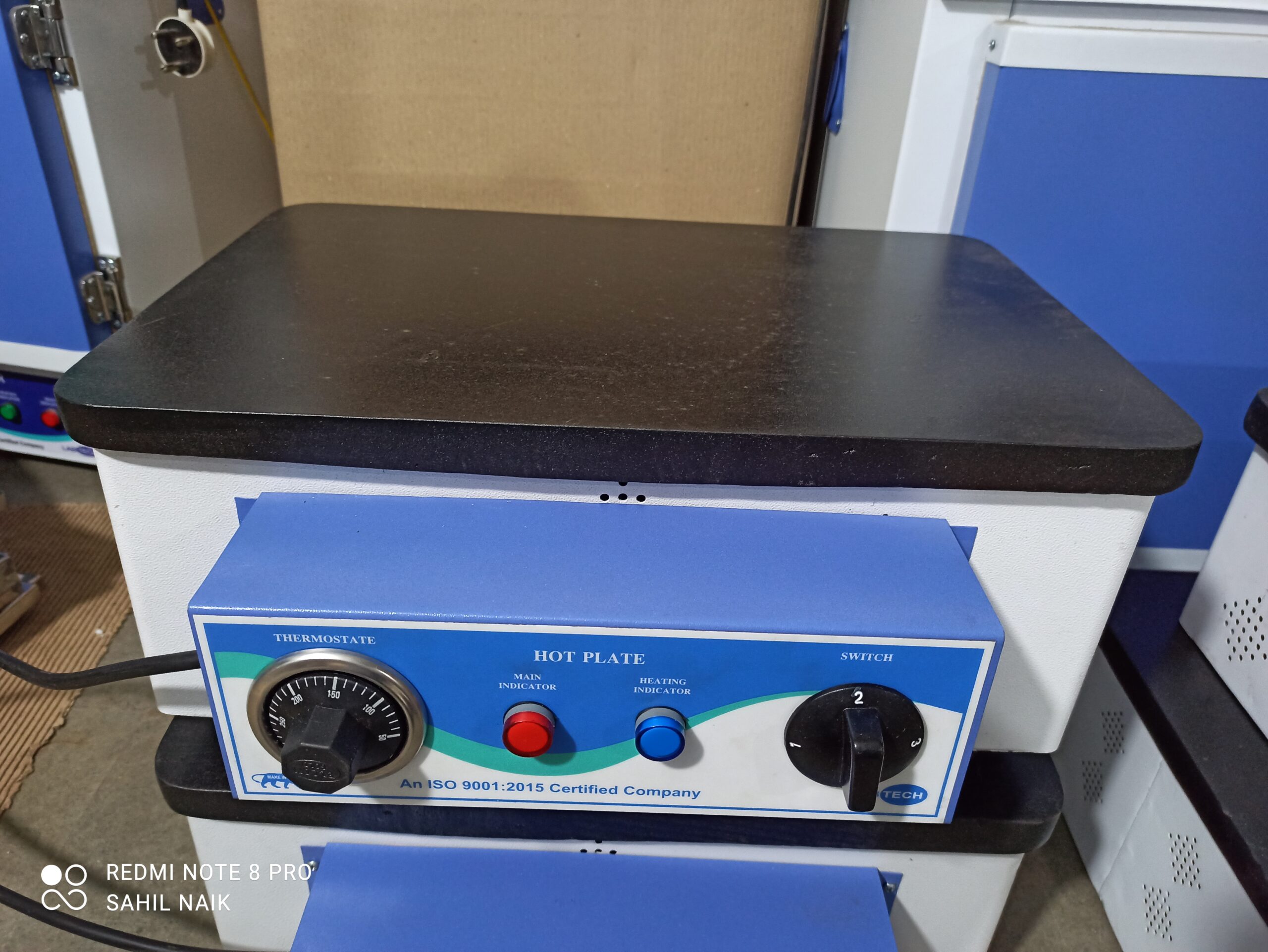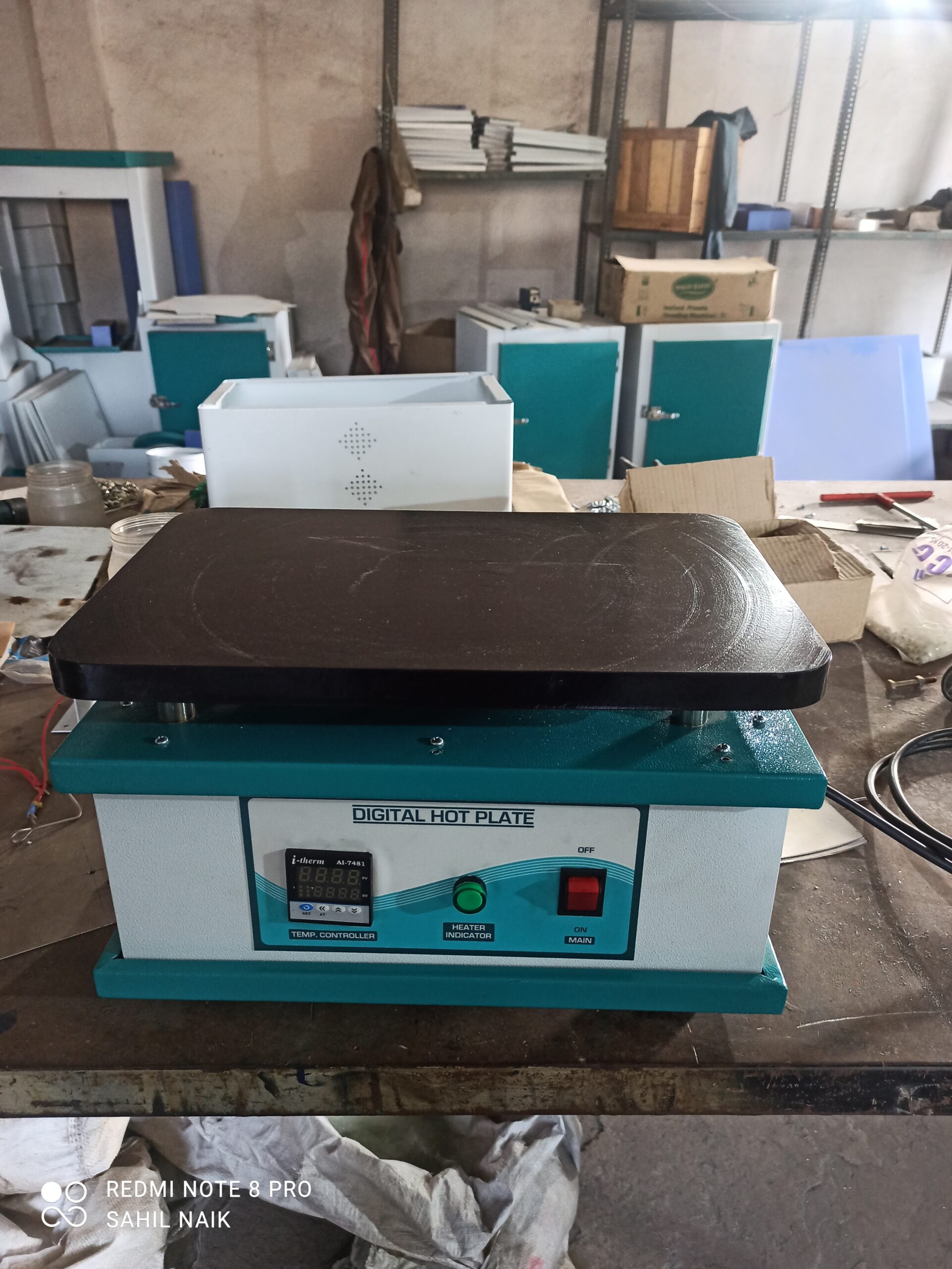 Hot Plates available in different sizes and temperature ranges. We make laboratory hot plates in both rectangular and round shapes with surface temperature range up to 350°C and optional 500°C. Heating surface is made of either MS, Stainless Steel or Cast Iron. Temperature is controlled through energy regulator or digital PID controller which efficiently controls temperature and also displays set value and process value. Other cabinet is made of powder coated mild steel. These lab grade heating plates are light weight and durable, and can be bought at reasonable price in India.